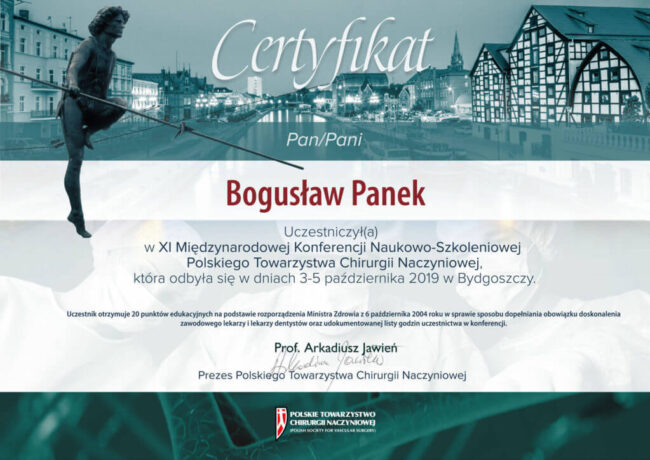 W ostatnich latach zauważalny jest dynamiczny rozwój chirurgi naczyniowej. W dniach 3-5 października br. odbyła się konferencja szkoleniowa mająca przedstawić dalsze kierunki rozwoju jak i nowinki w tej dziedzinie. W szkoleniu brał udział dr n.med.Bogusław Panek. Prelegentami byli wykładowcy z krajowych ośrodków medycznych jak również z zagranicy.